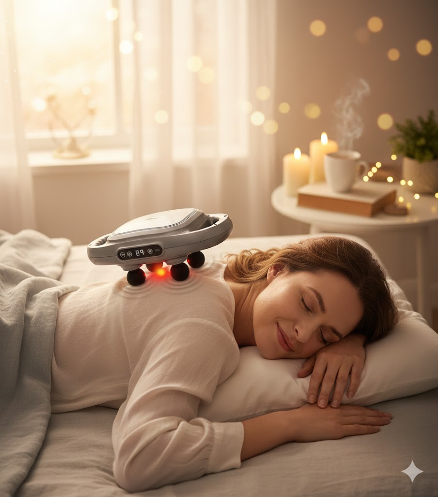 This massage device brings soothing relief right to your shoulders and upper back, helping you unwind after a long day. The gentle warmth and rhythmic pressure work together to release deep tension and calm tired muscles. Its hands free design allows you to rest comfortably while the device does the work. Enjoy a peaceful moment at home and let your body recover with effortless comfort.